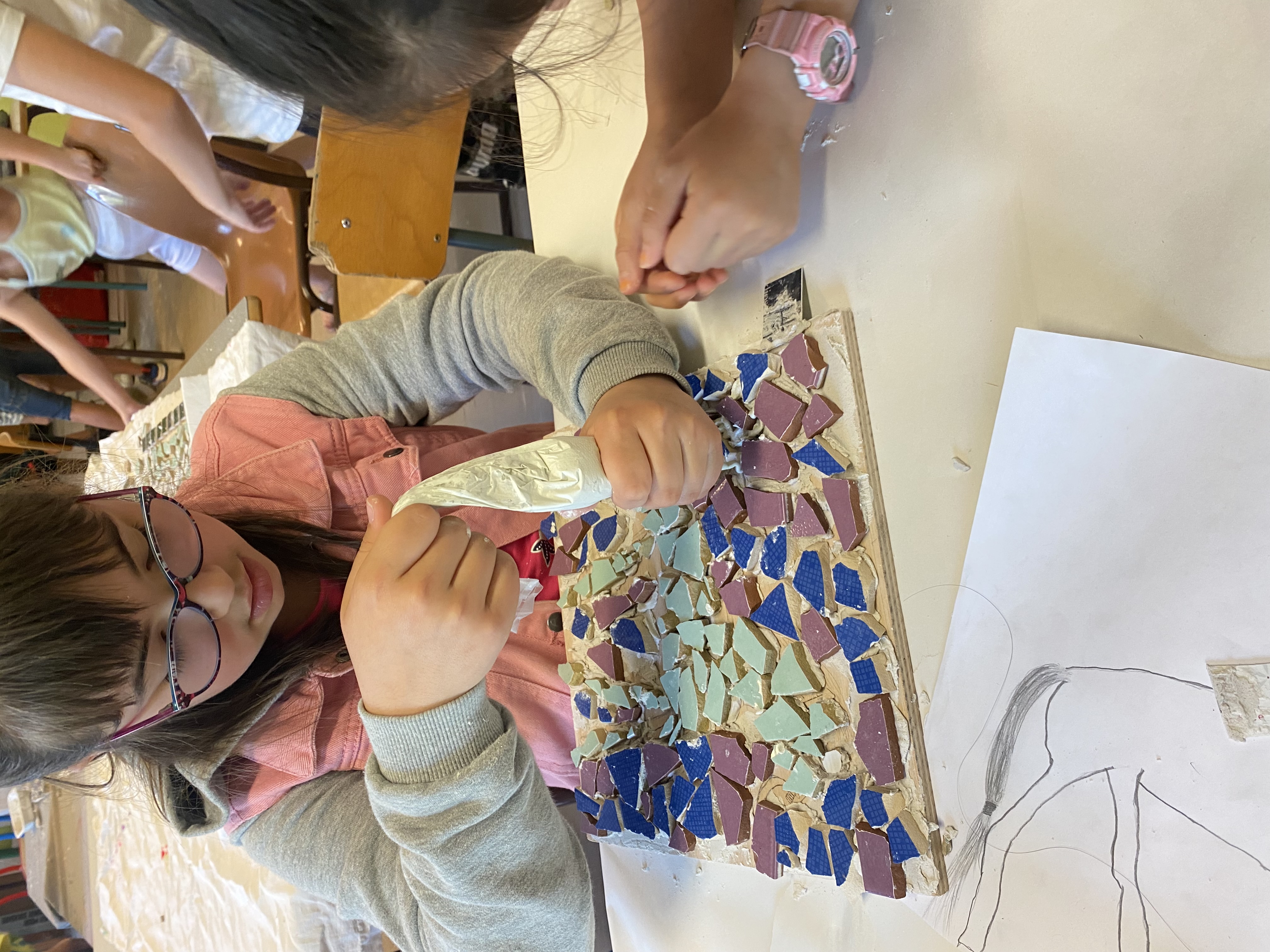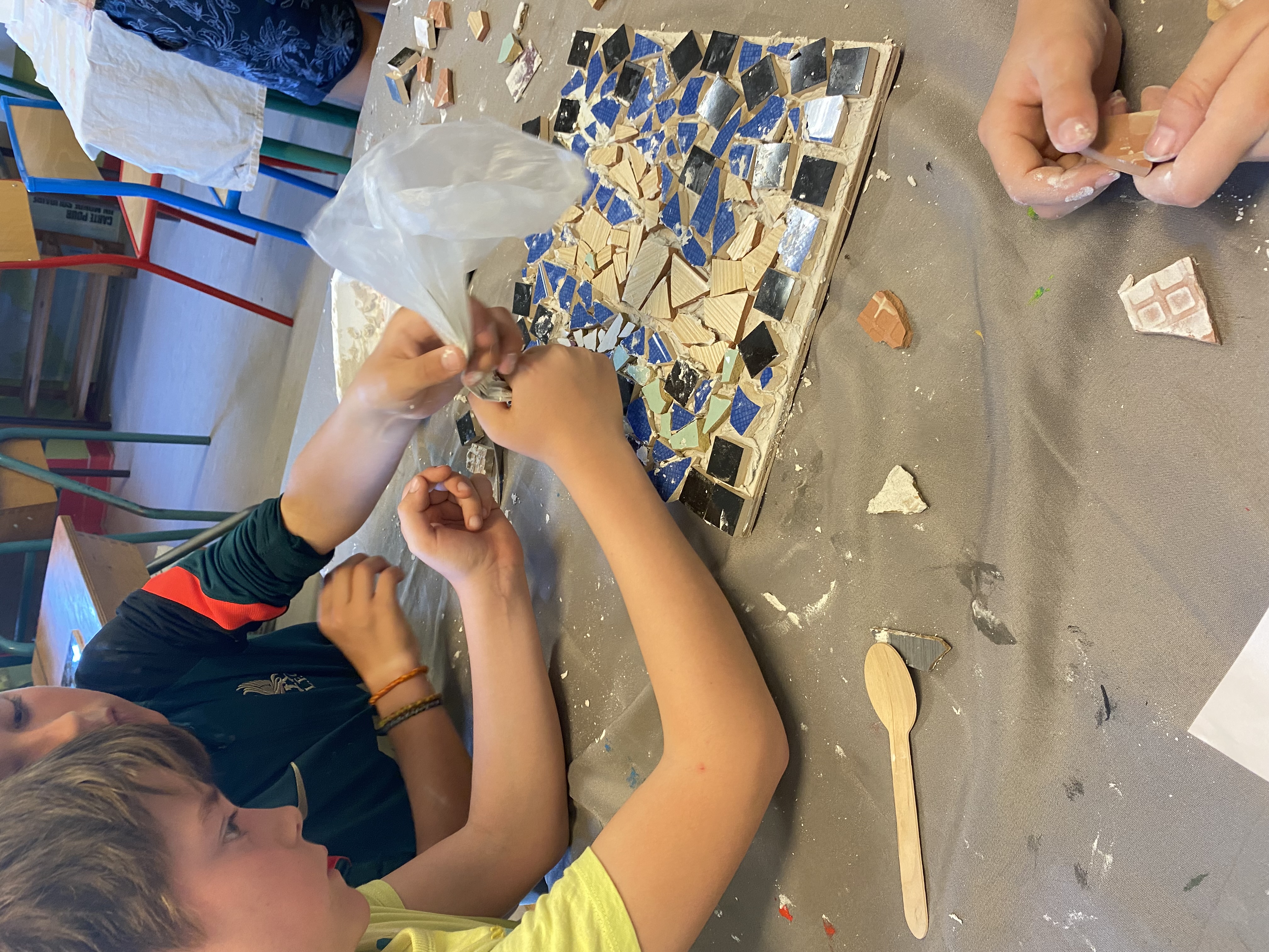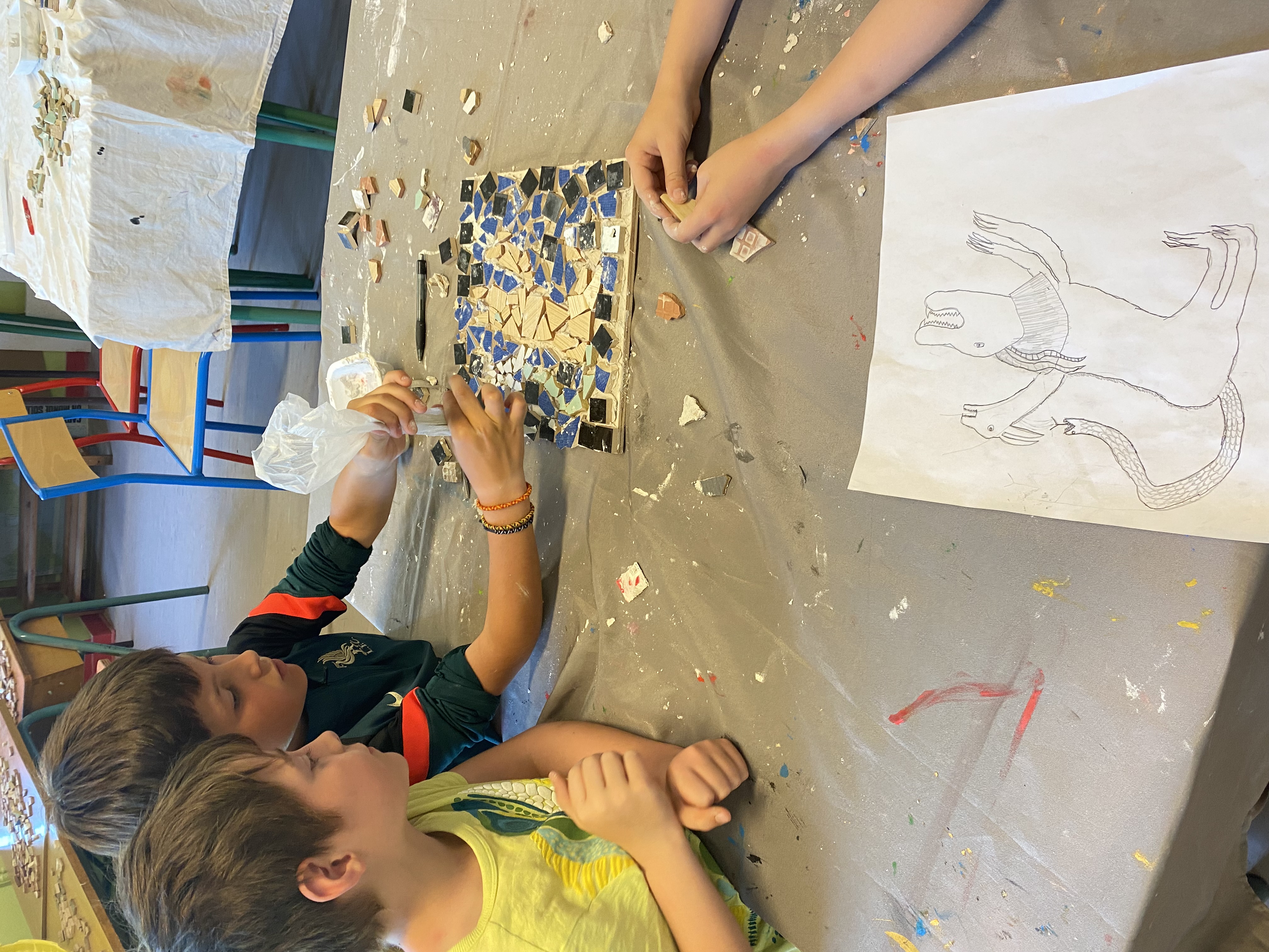 Mme Deshors, artiste langeadoise, a accompagné la création de mosaïques, inspirées de l'époque Gallo Romaine.