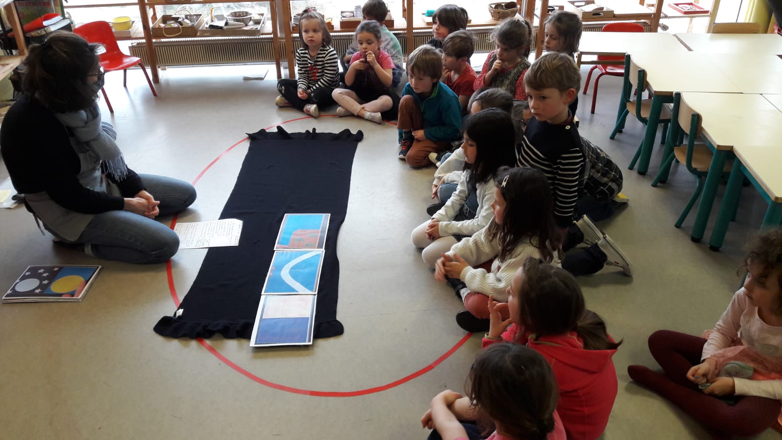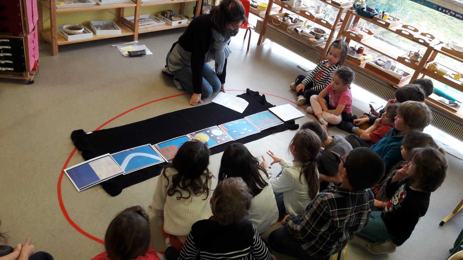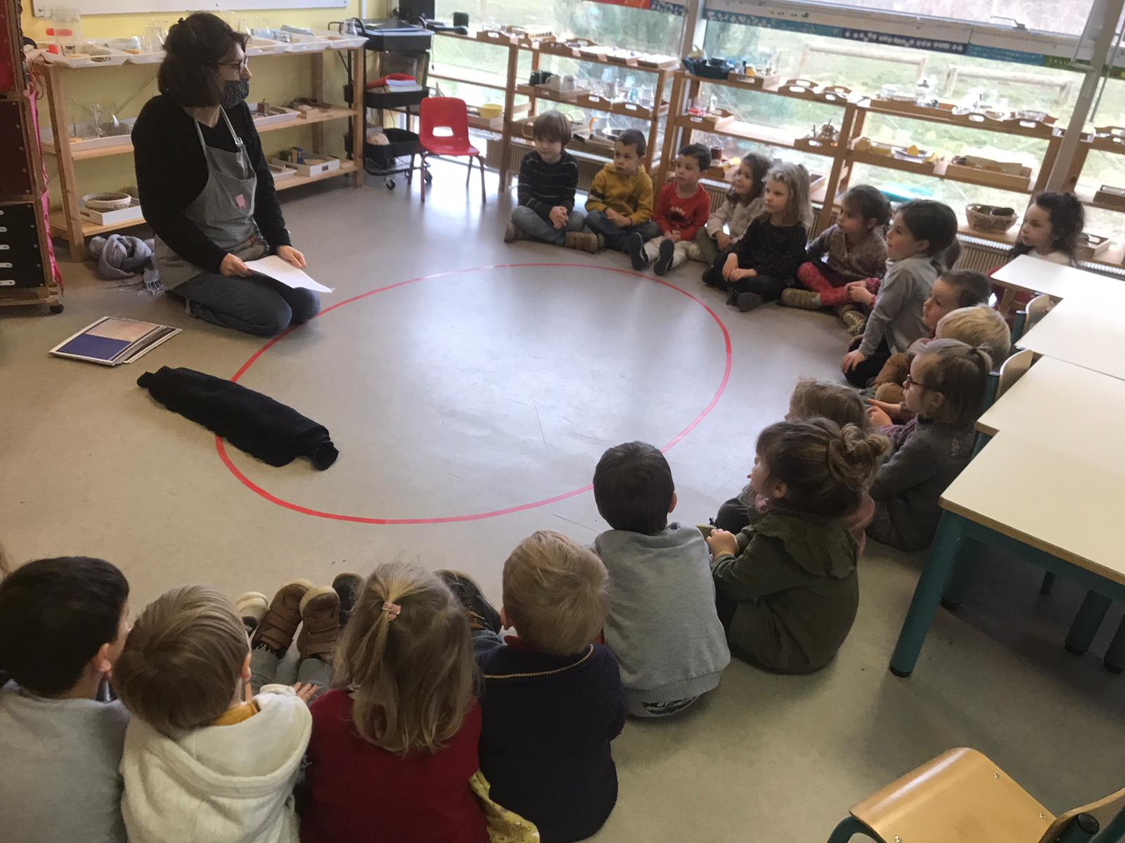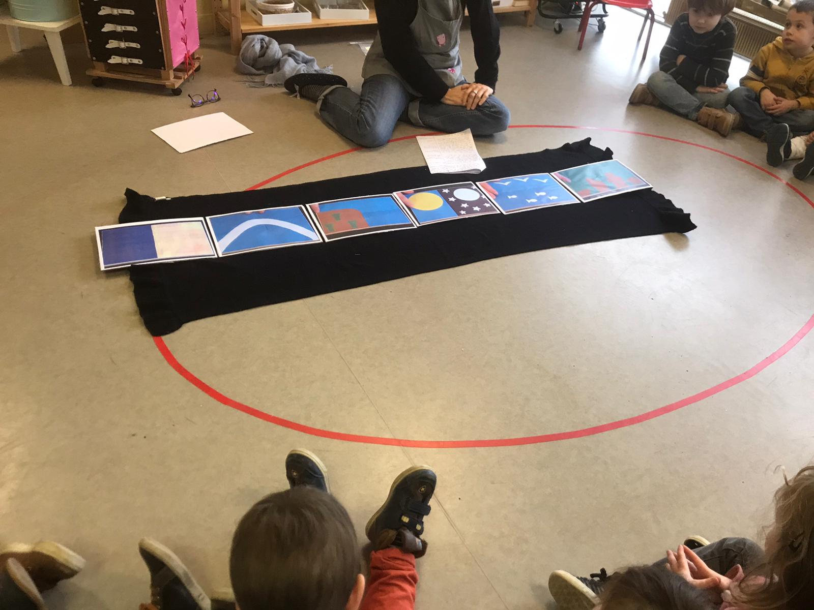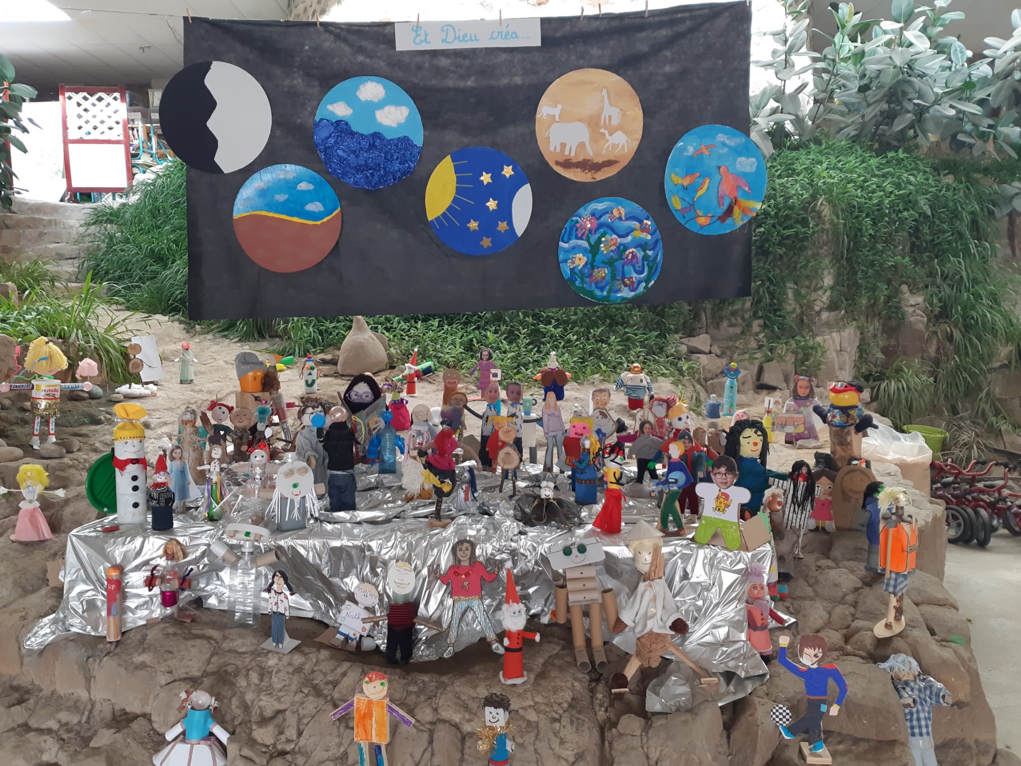Avant les vacances de février, les enseignantes ont choisi de relier leur projet pédagogique à la pastorale en étudiant le récit de la création. Comme pour chaque séance, une belle réalisation commune a été mise en place sur le rocher.