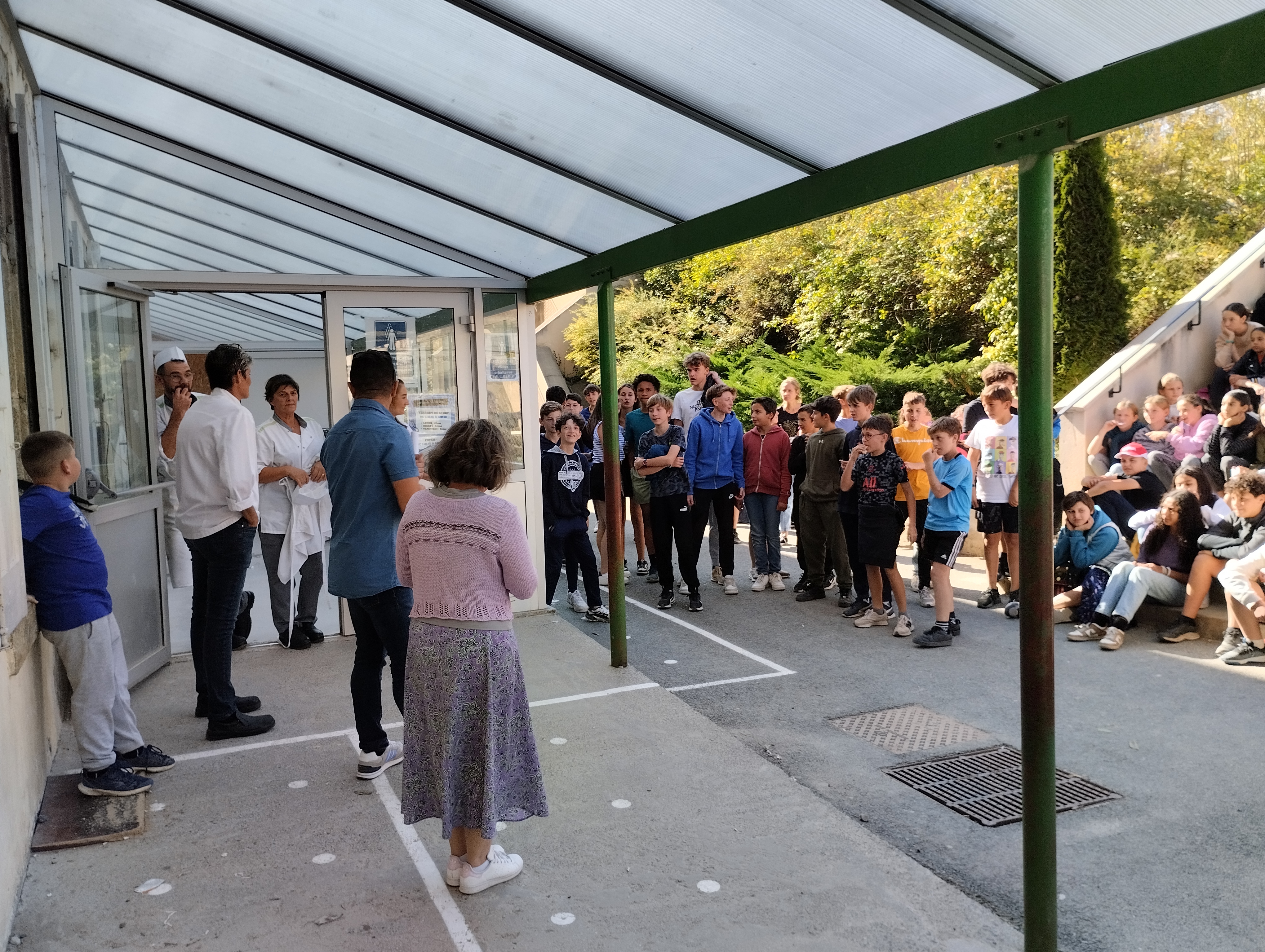 Vendredi 13 octobre, la cantine du collège Saint-Louis était aux couleurs du XV de France. La société de restauration API a offert à chaque élève de primaire un bracelet alors qu’un tirage au sort était organisé pour les collégiens. Ainsi, à 13h, à la fin du service, Mme Mignot a procédé au tirage au sort. Enzo Madonna Cartal a été le grand vainqueur : il est reparti avec un ballon de rugby au couleurs de la coupe du Monde 2023.