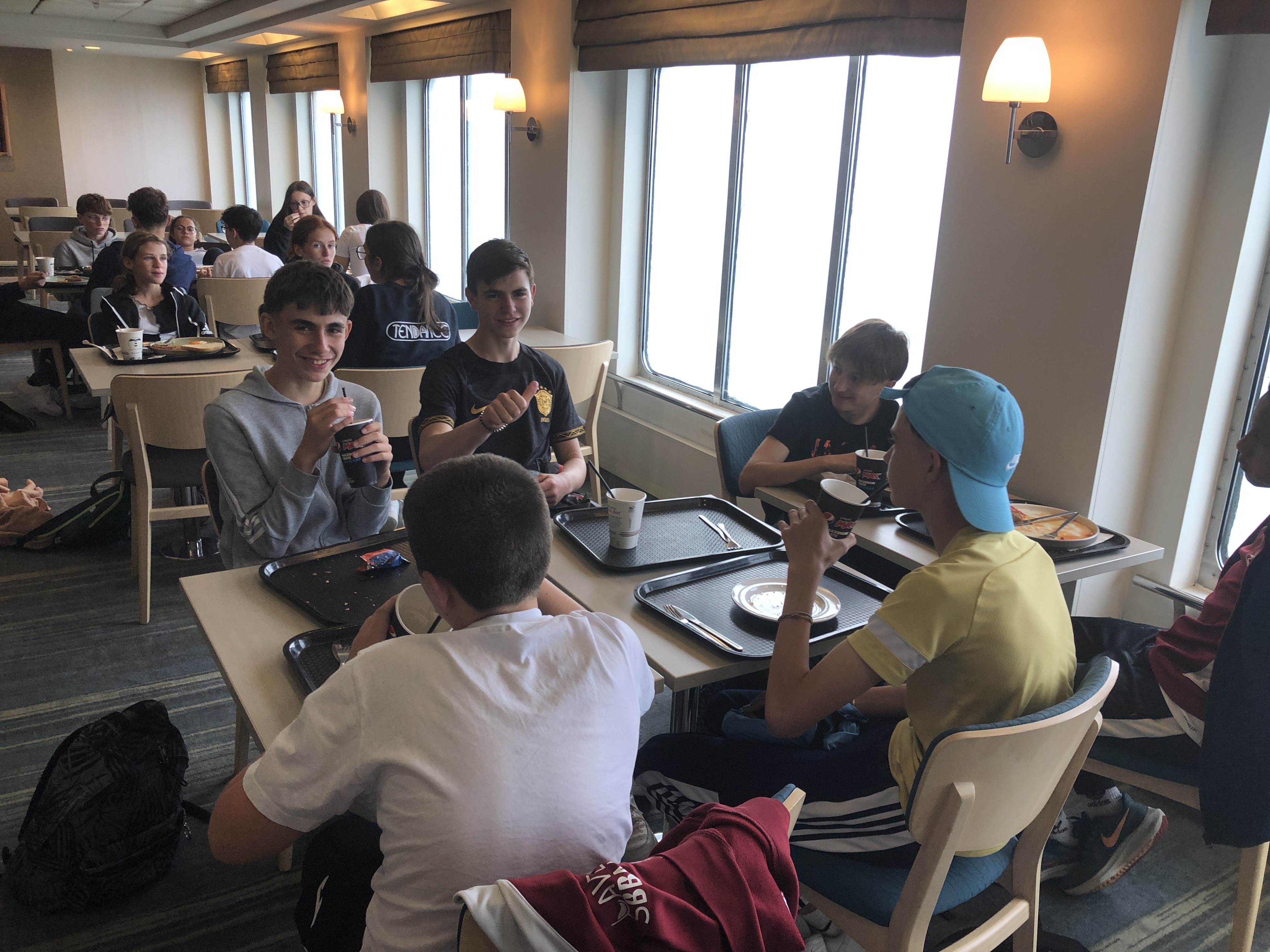 Partis le dimanche, les élèves sont arrivés à Douvres vers 8h (heure locale) ce lundi. Ils ont ensuite été conduits jusqu'à Portsmouth où ils ont eu droit à un déjeuner dans un pub, une virée au centre commercial et une balade sur le port. L'après-midi, les élèves ont découvert le D-Day Museum.