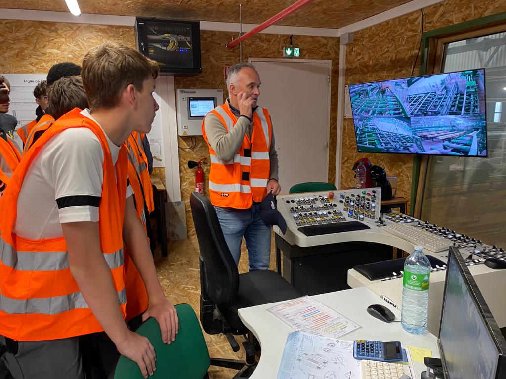 - les élèves ont visité la scierie GALLIEN à Craponne-sur-Arzon. M. Gallien et son équipe nous ont permis de découvrir une entreprise industrielle de la filière bois avec notamment un poste de Pilotage de ligne de production. Le technicien à ce poste pilote l'ensemble de la scierie automatisée où rentrent les troncs d'arbres coupés à 5m et sortent les planches et chevrons de 30 dimensions différentes ! Le poste nécessite une telle concentration que les "pilotes" changent toutes les 4 heures. Le responsable technique a expliqué le fonctionnement de la scierie d'un point de vue maintenance.
