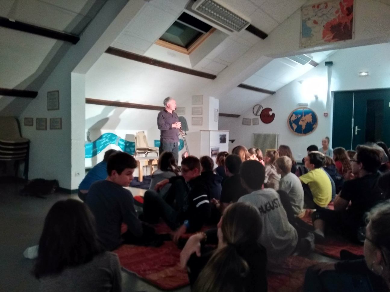 Après une installation dans les chambres et un bon repas, les élèves ont participé aux différents ateliers prévus, mais adaptés en fonction de la météo. Beaucoup de vent, un peu de pluie donc pas de randonnée pour ce mercredi après-midi.