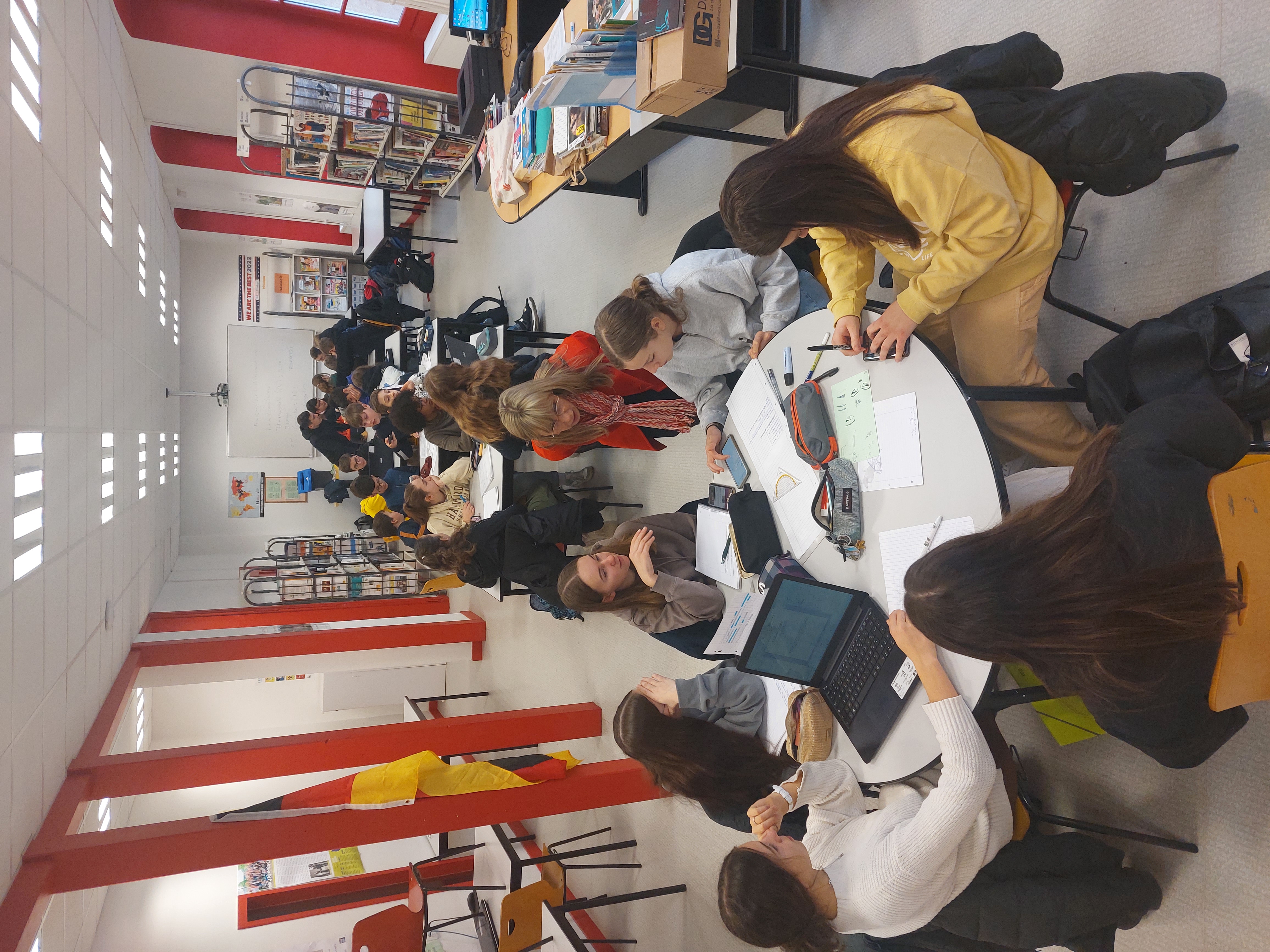 Jeudi matin, les élèves concernés par l’échange franco-allemand ont réalisé des recherches dans les différents Centres de Documentation et d’Information, accompagnés par les professeures documentalistes des établissements scolaires, Florence Defix au collège Saint-Louis, Géraldine Lasherme au lycée La Chartreuse et Martine Malartre à l’ensemble scolaire Saint-Jacques de Compostelle. En soirée, ils ont présenté les diaporamas en bilingue réalisés sur des sujets divers en lien avec la thématique « être jeune au Puy-en-Velay » lors d’une soirée de clôture au collège Saint-Jacques de Compostelle, à laquelle étaient conviés tous les participants de l’échange francoallemand ainsi que les familles d’accueil des correspondants.