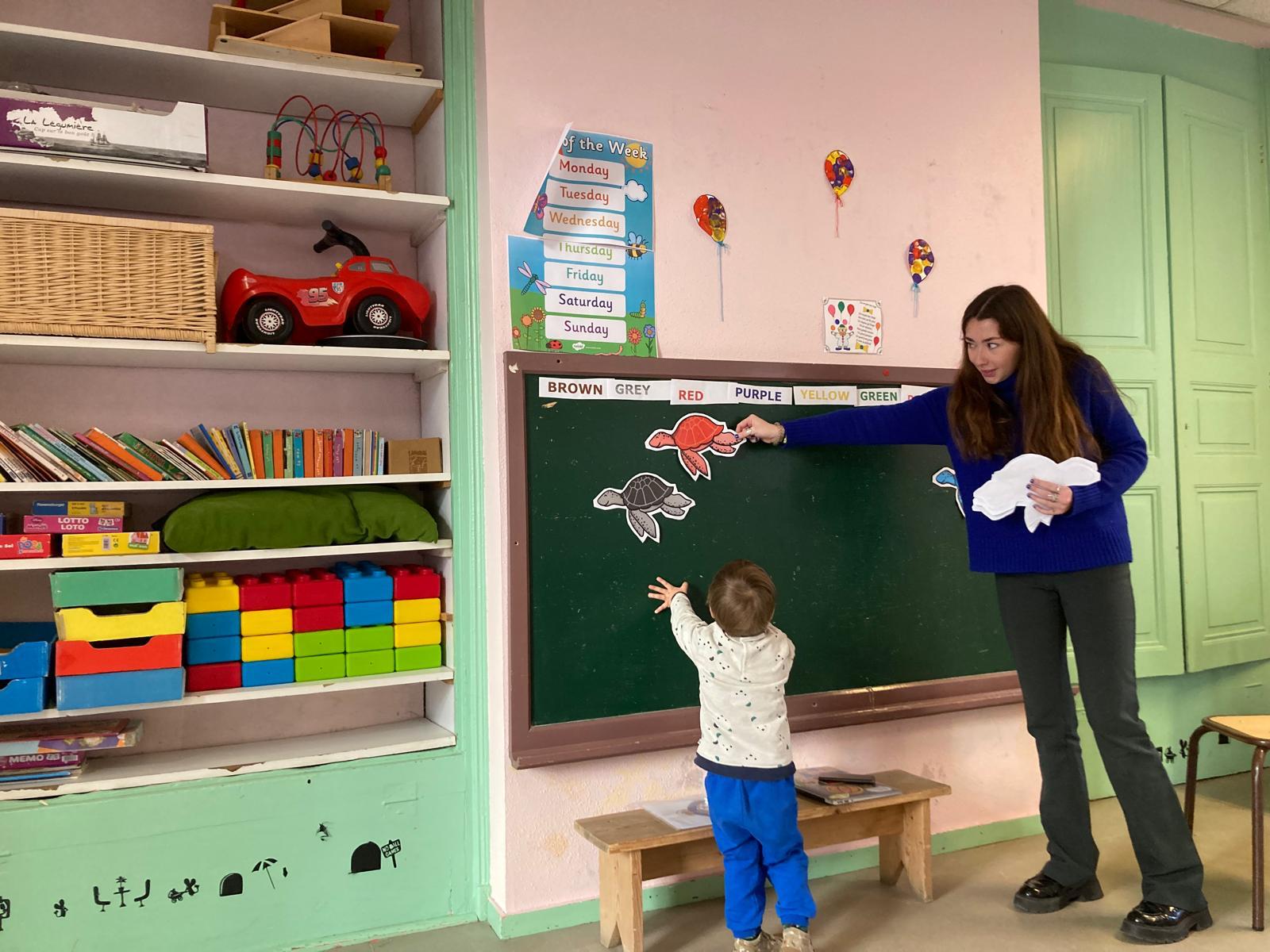 Lors de ses premières séances avec les enfants, elle a pu aborder en musique les différentes parties du corps mais aussi les couleurs. Elle proposera tout au long de l'année scolaire des jeux de vocabulaire, des chansons et des histoires interactives rendant ainsi l'apprentissage de l'Anglais ludique et engageant.