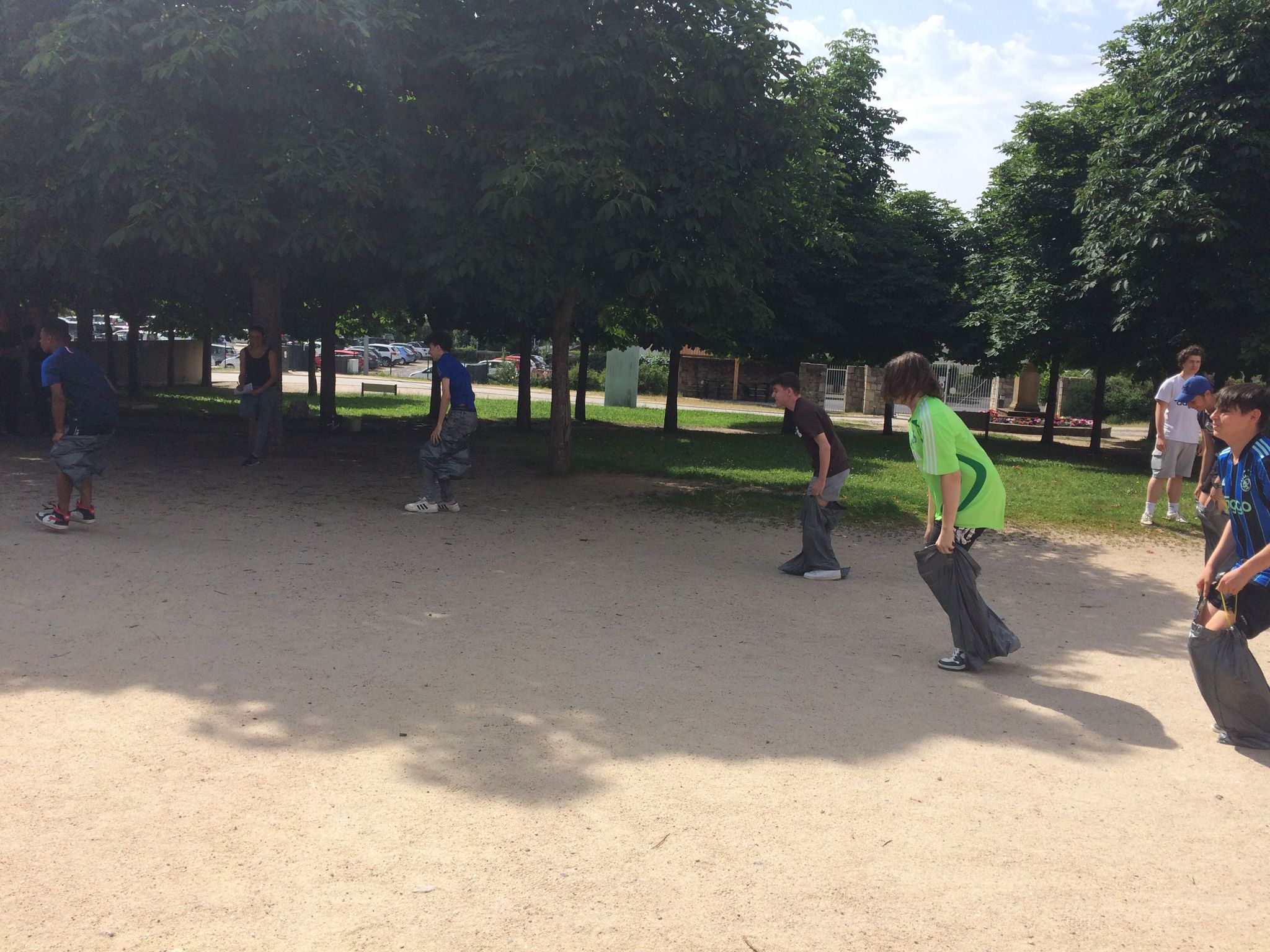 Plusieurs jeux étaient organisés pour permettre aux lycéens de se challenger par petits groupes ou en solo : les verres percés, la course en sac, le coffre et les prisonniers, la course des pieds liés, etc.