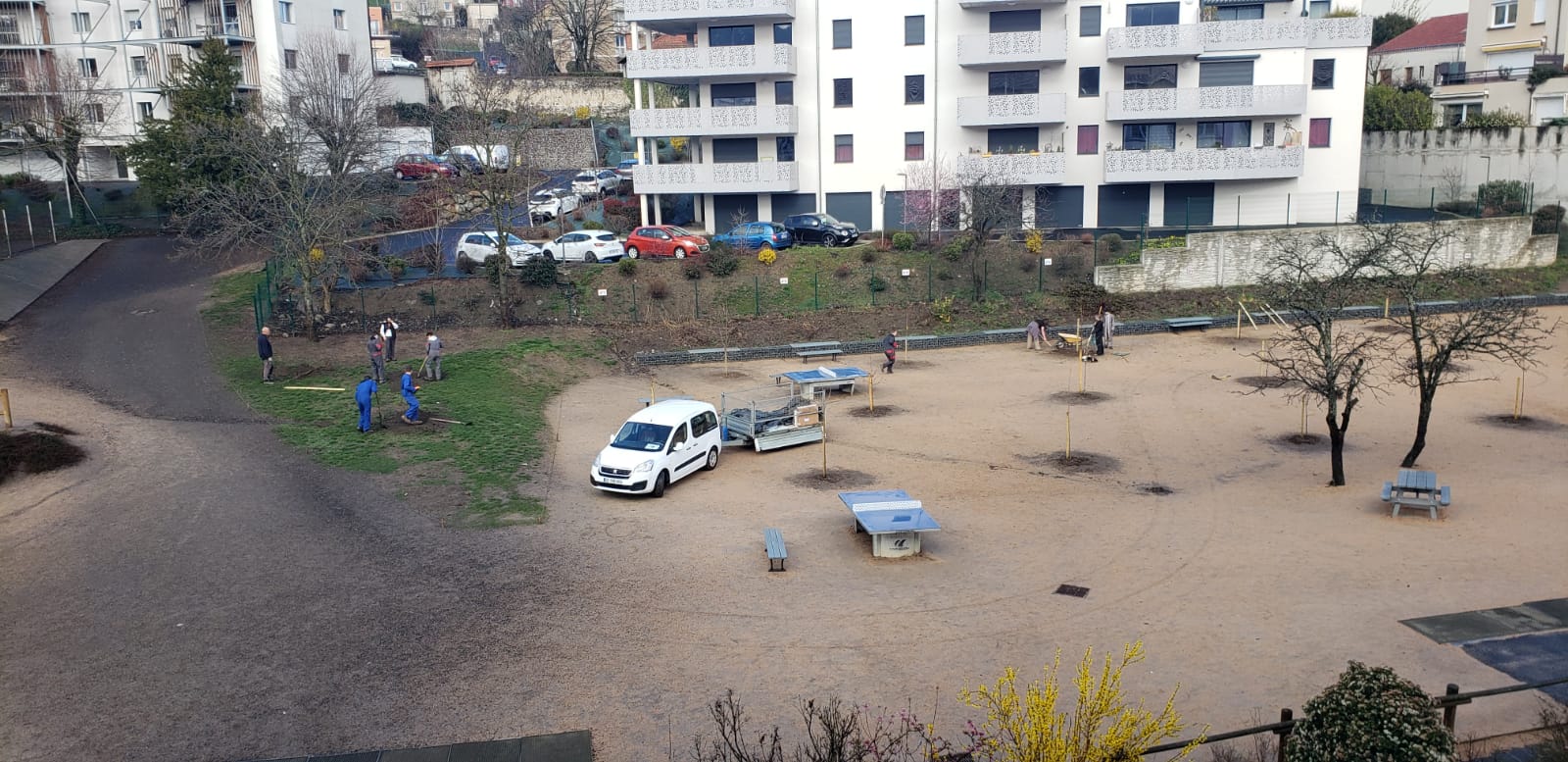 Les élèves de 4ème SEGPA du collège La Chartreuse se sont rendus chez leurs camarades de St Louis afin de planter 15 arbres dans leur cour de récréation. Cette démarche s'inscrit dans le projet d'aménagement de la cour, initié par les élèves, personnels et professeurs pour apporter de l'ombre dans ces espaces de plein air. Merci aux collégiens et à leur professeur