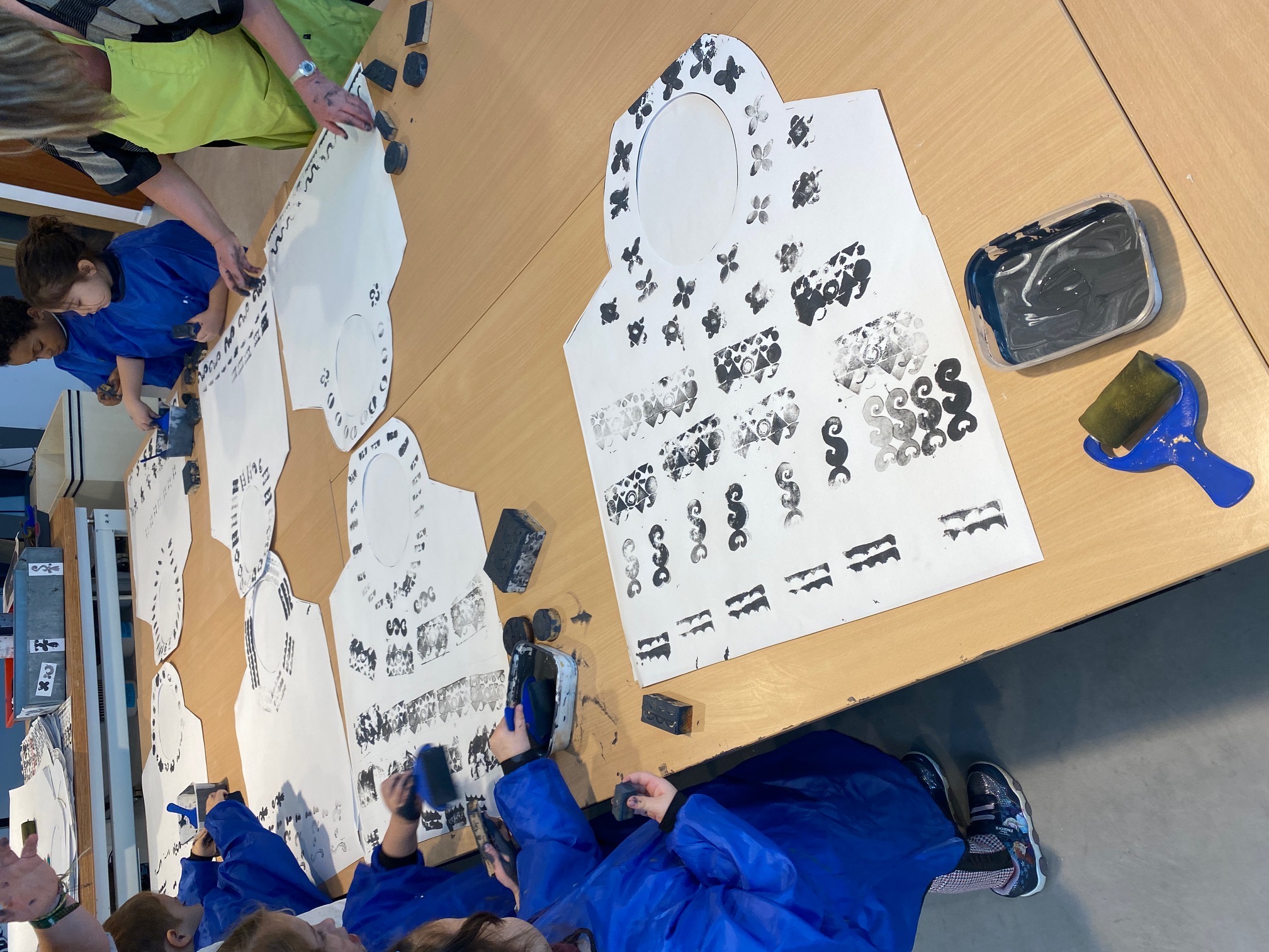 - Puis création d’armures en papier décorées à l’aide de tampon encreur.